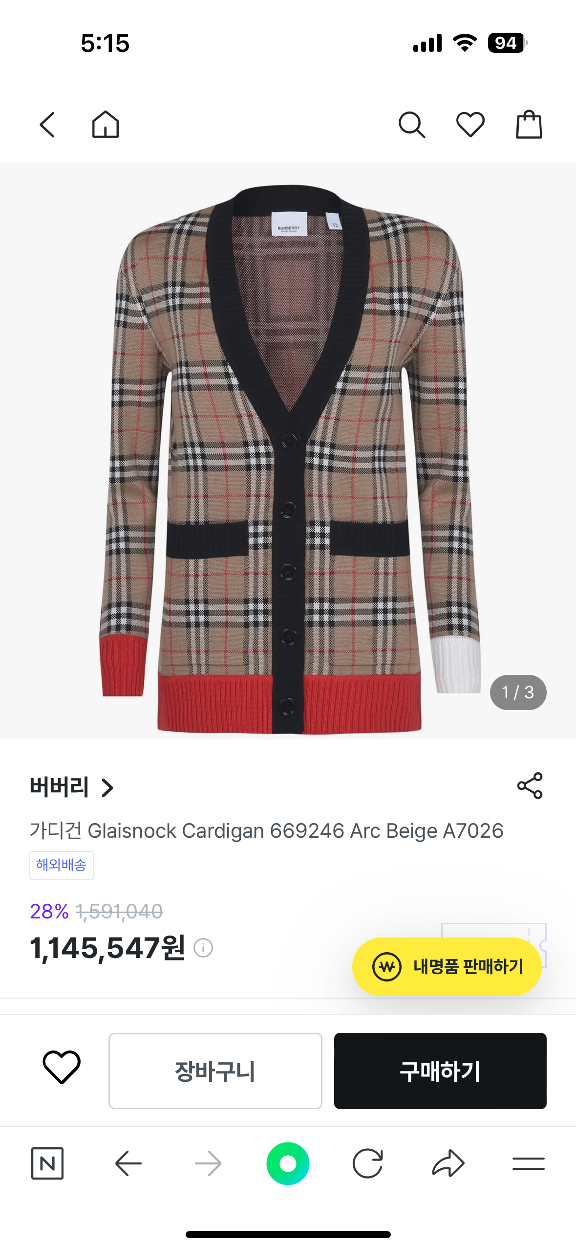 버버리 가디건