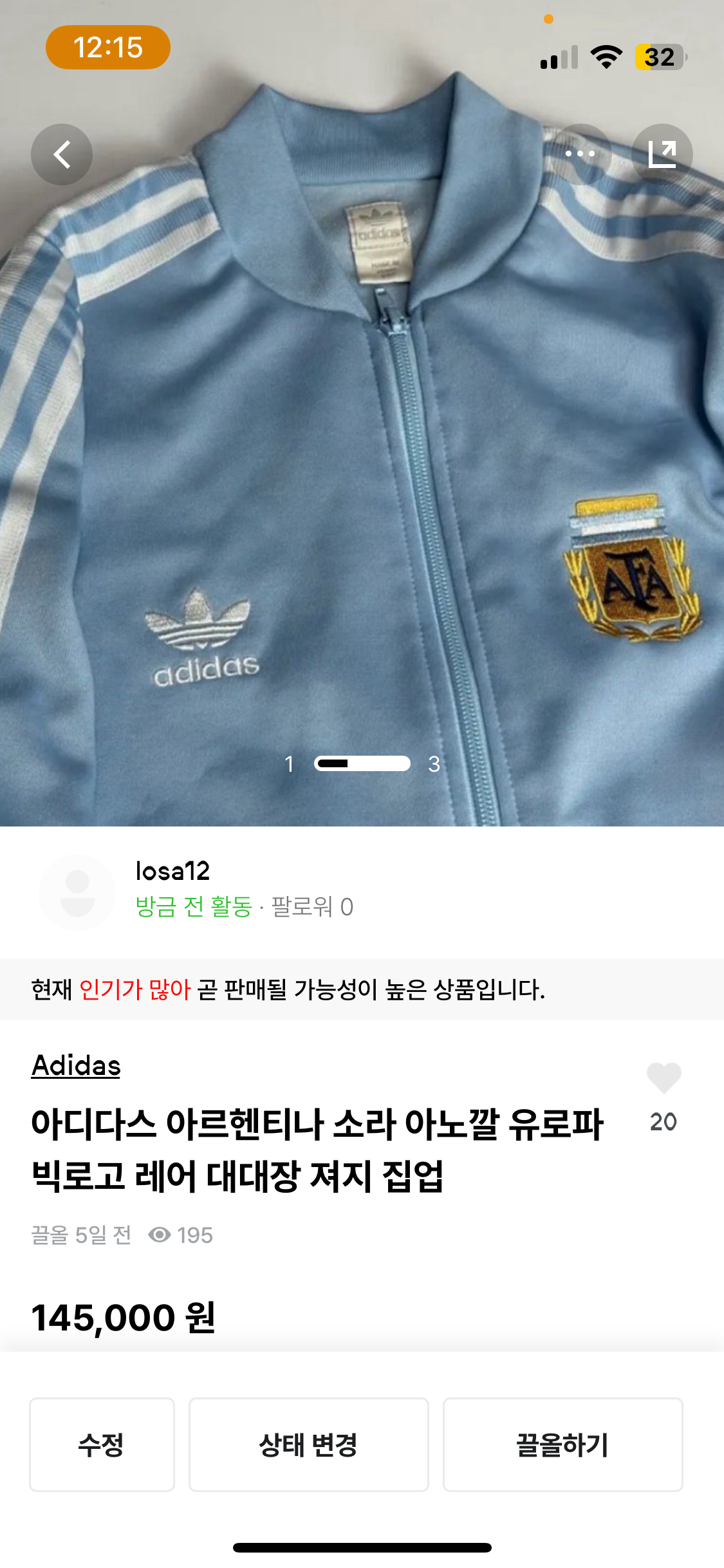 아디다스 아르헨티나 소라 대대장 저지